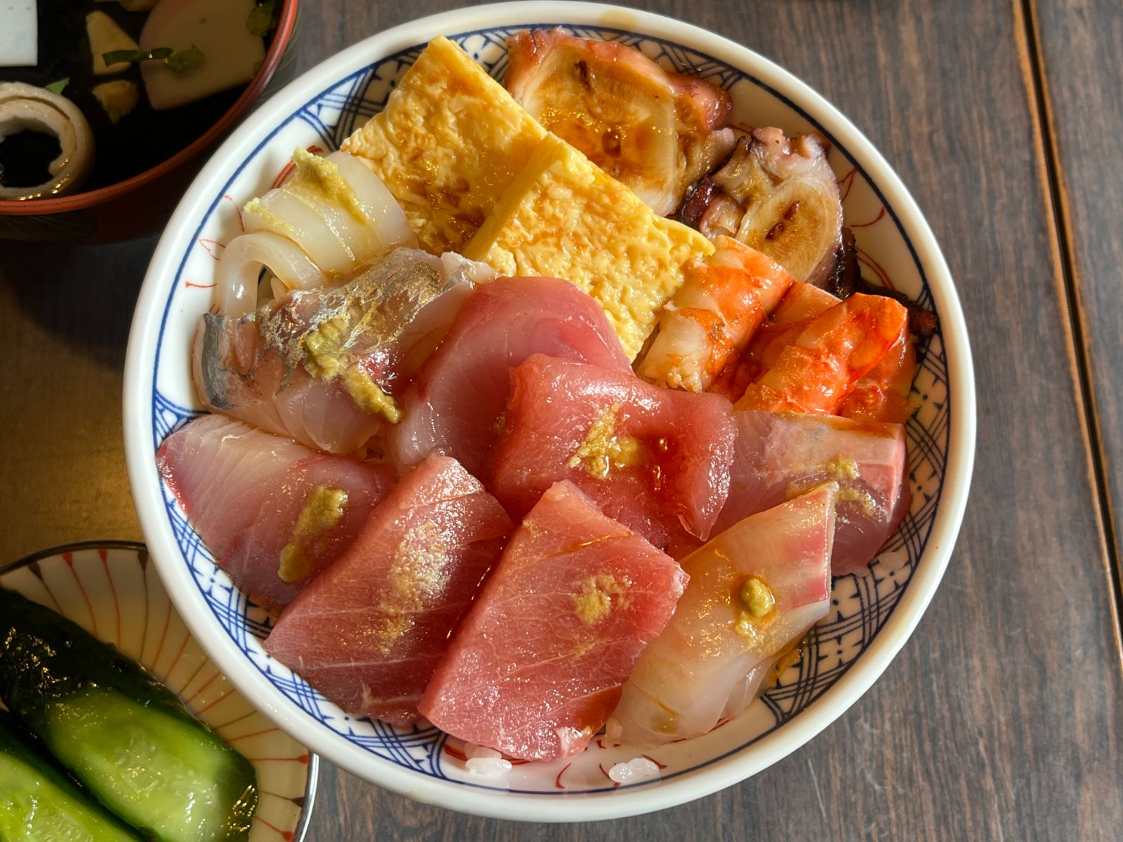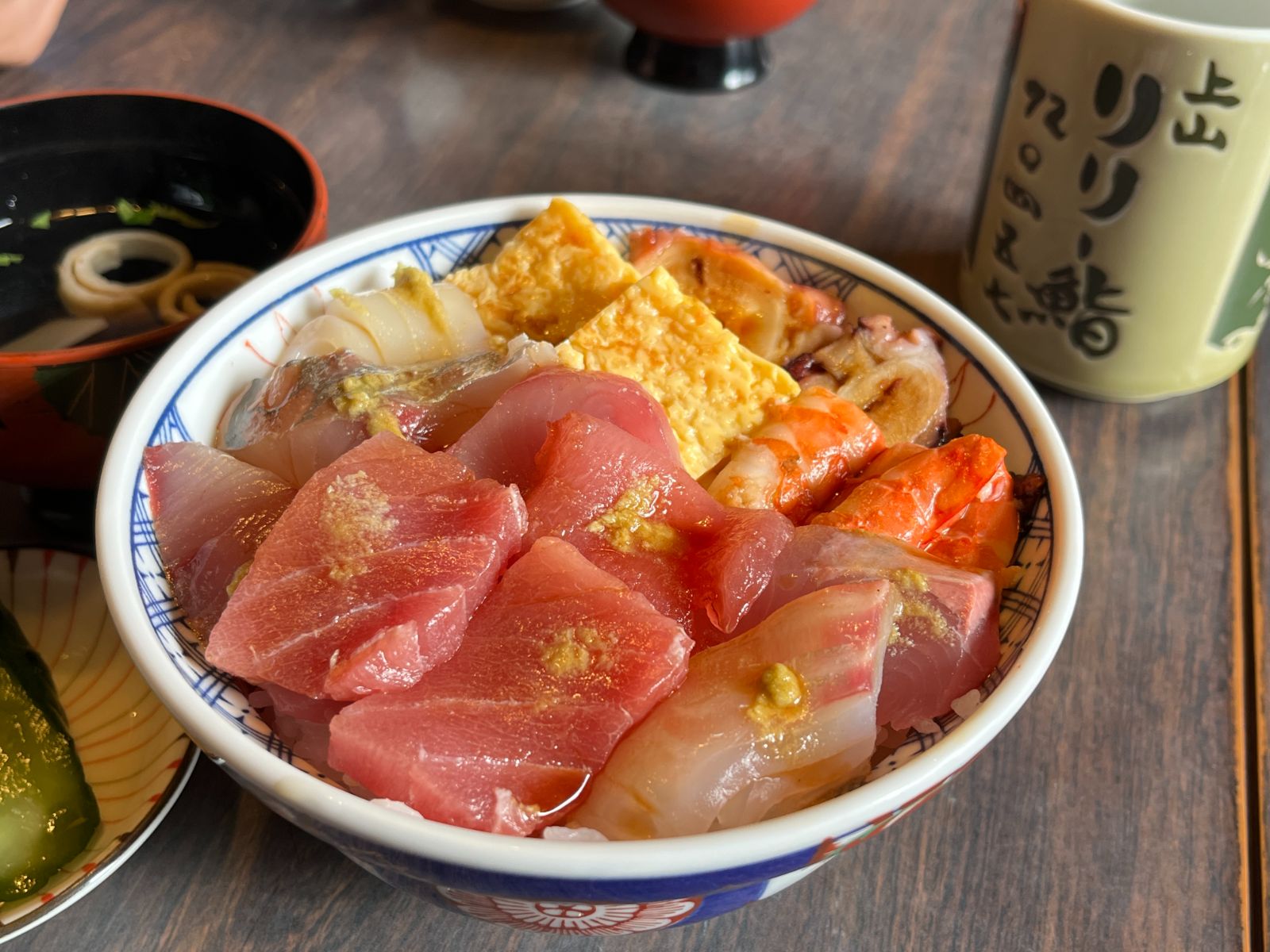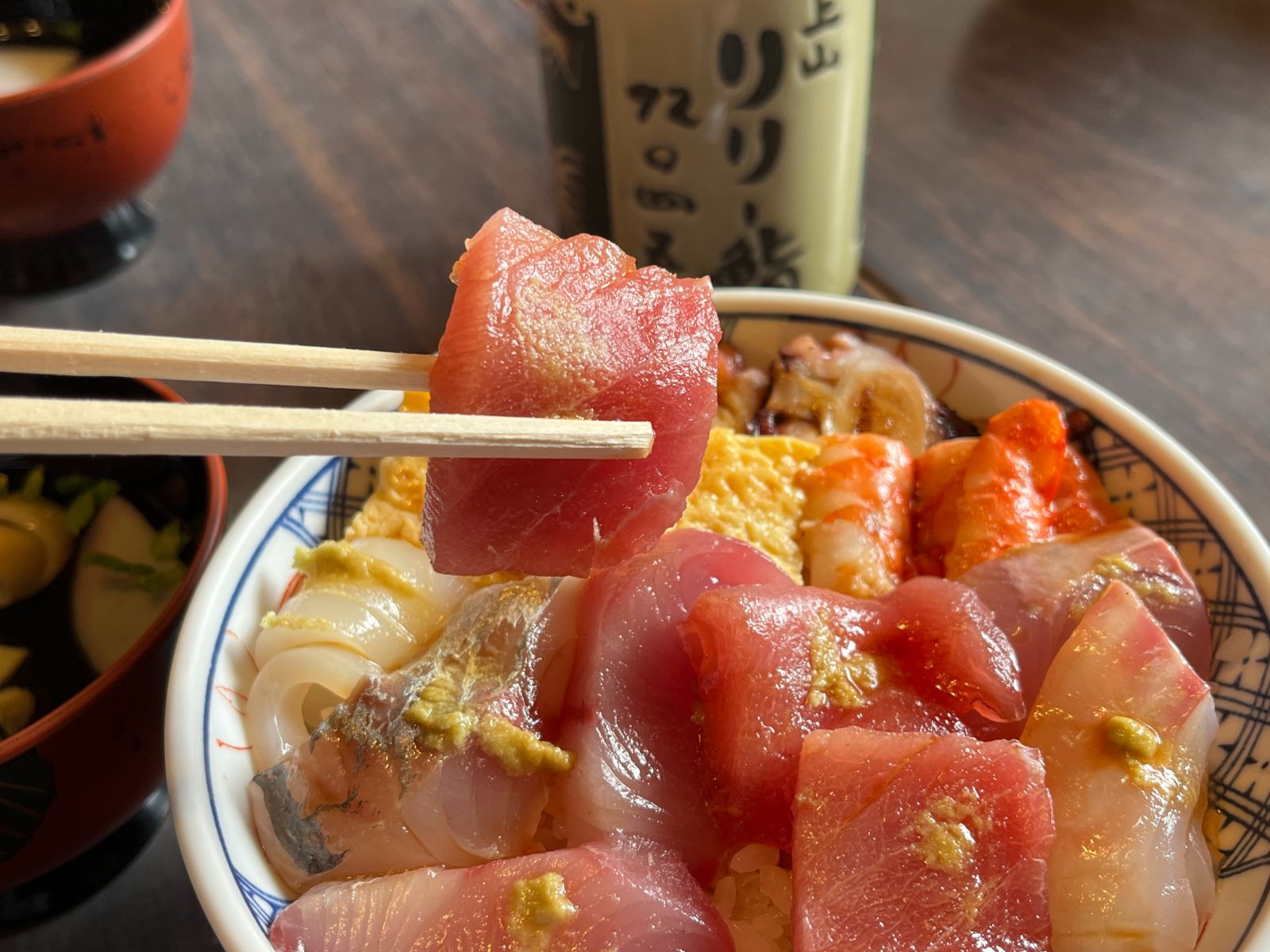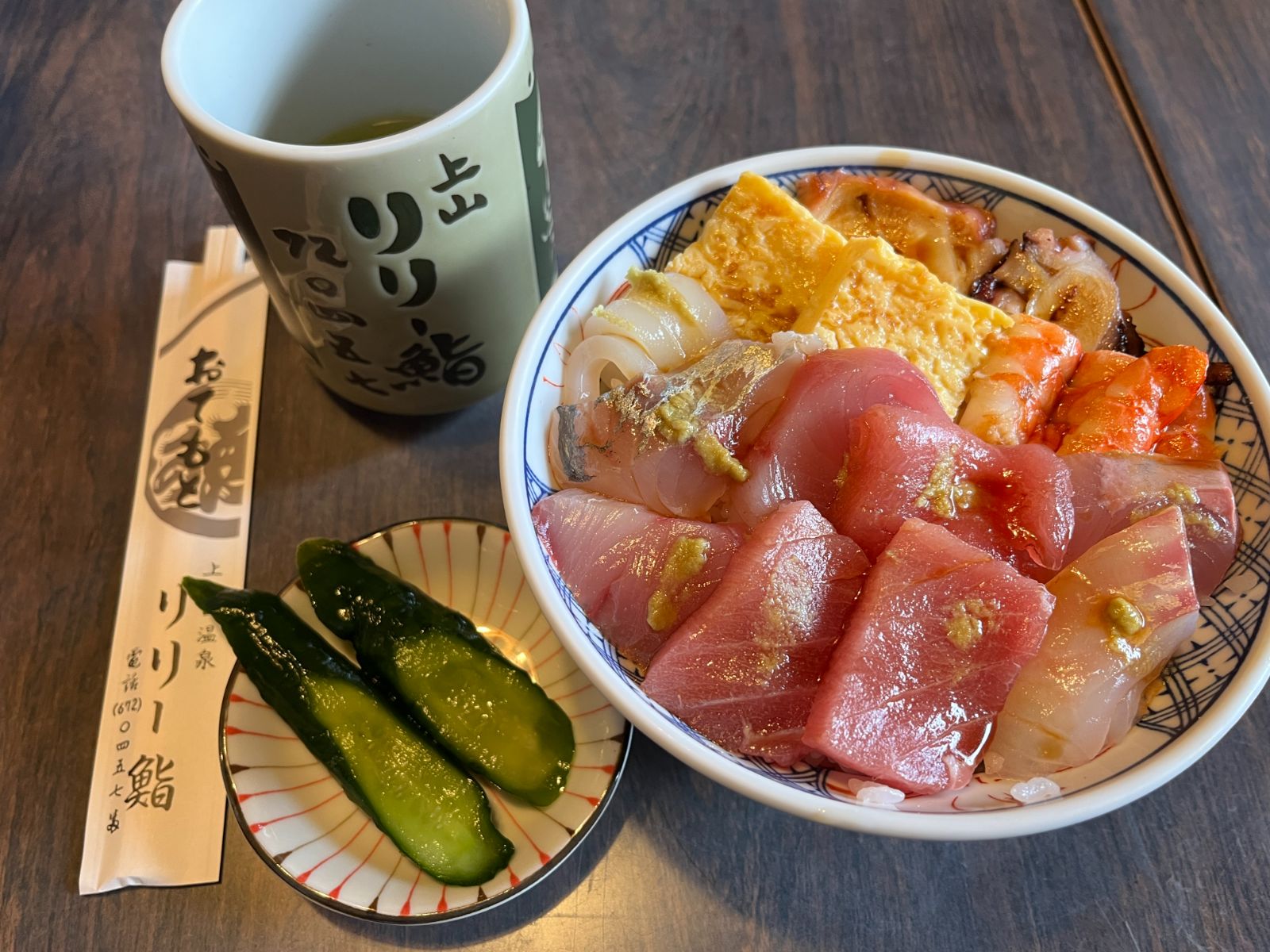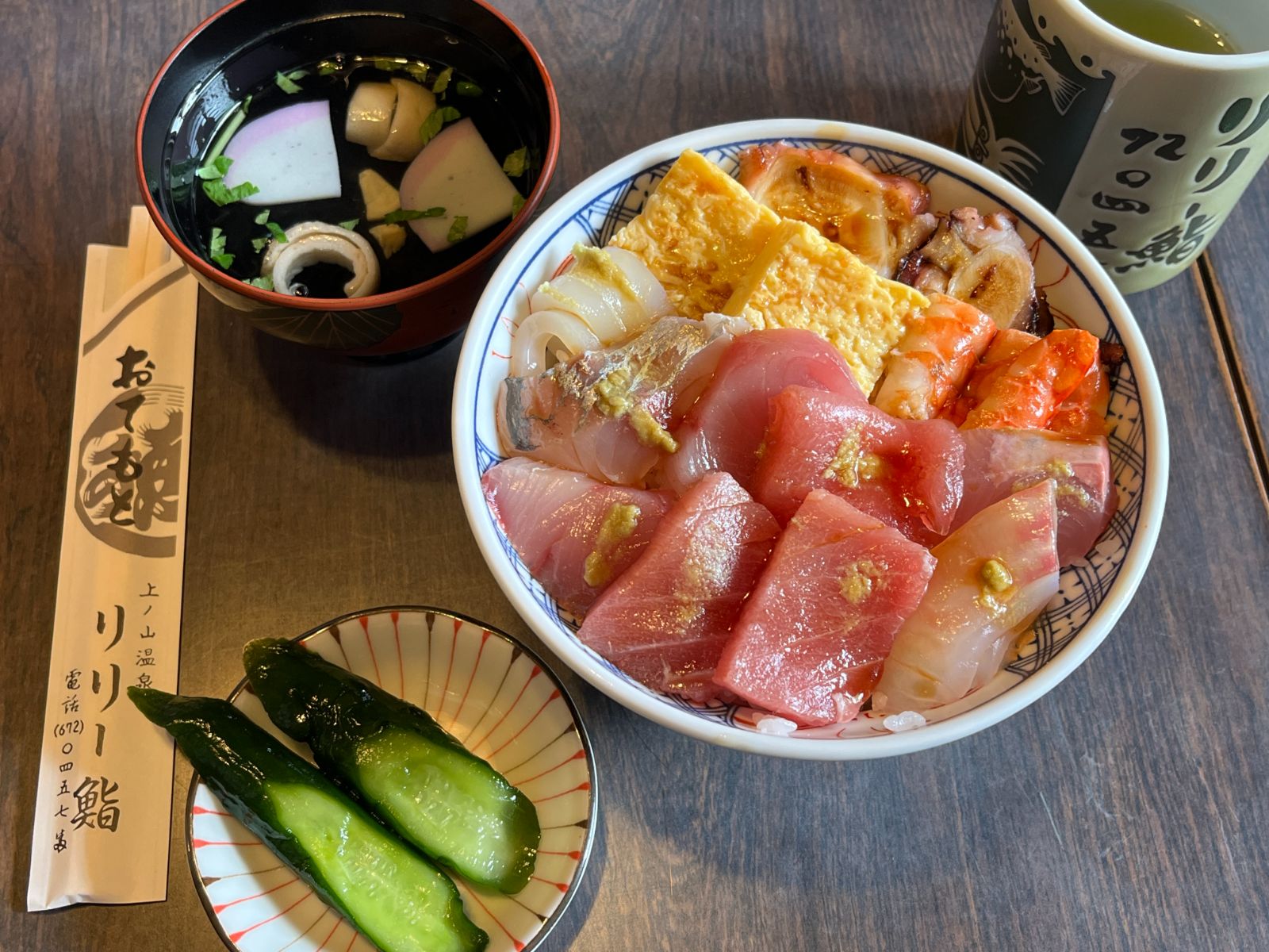 上山市の「リリー鮨」で、厚切り刺身たっぷりの海鮮丼ランチを堪能しました。