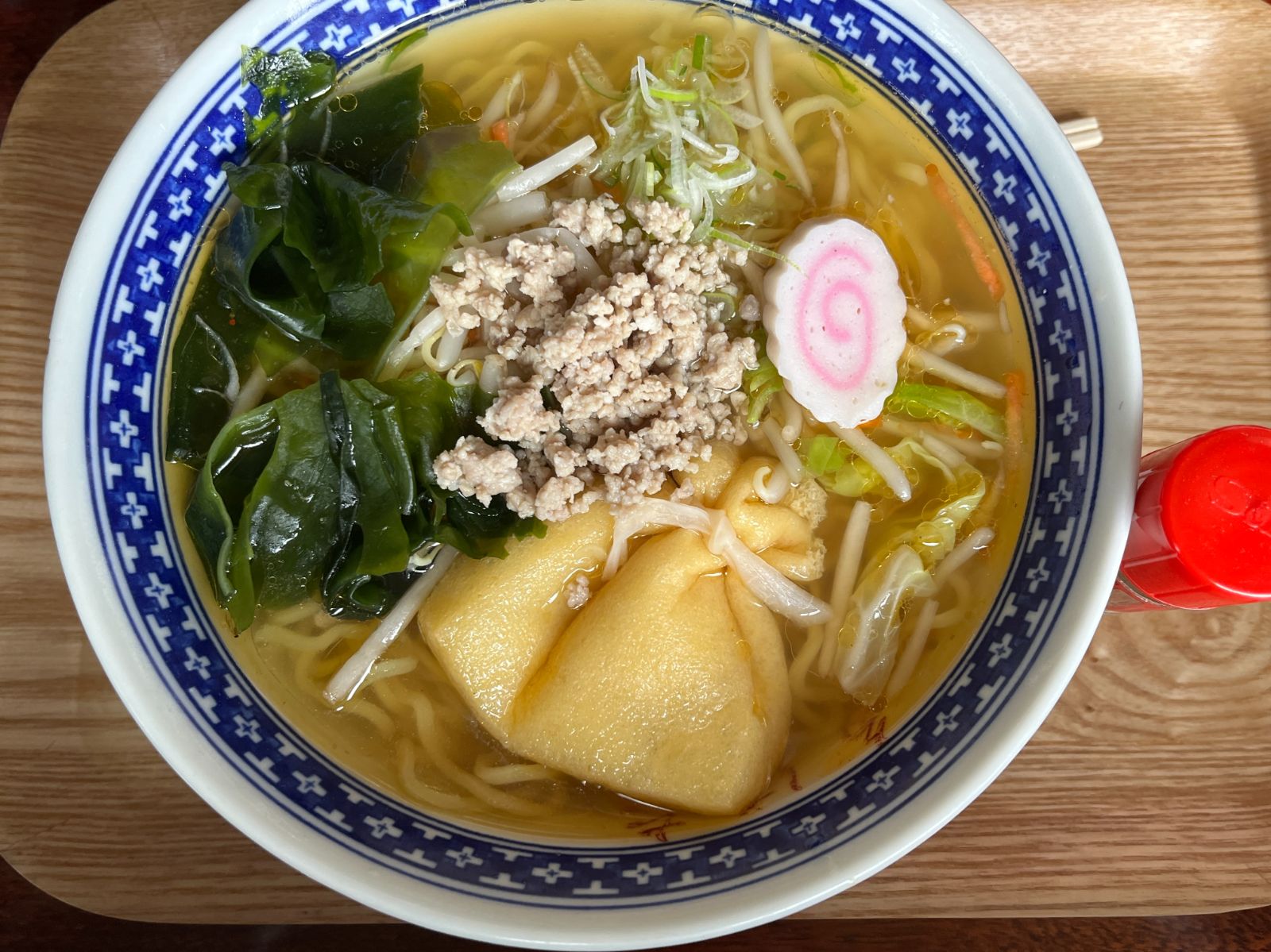 こちらは中華そばベースに、野菜炒め・ひき肉・わかめがトッピング。