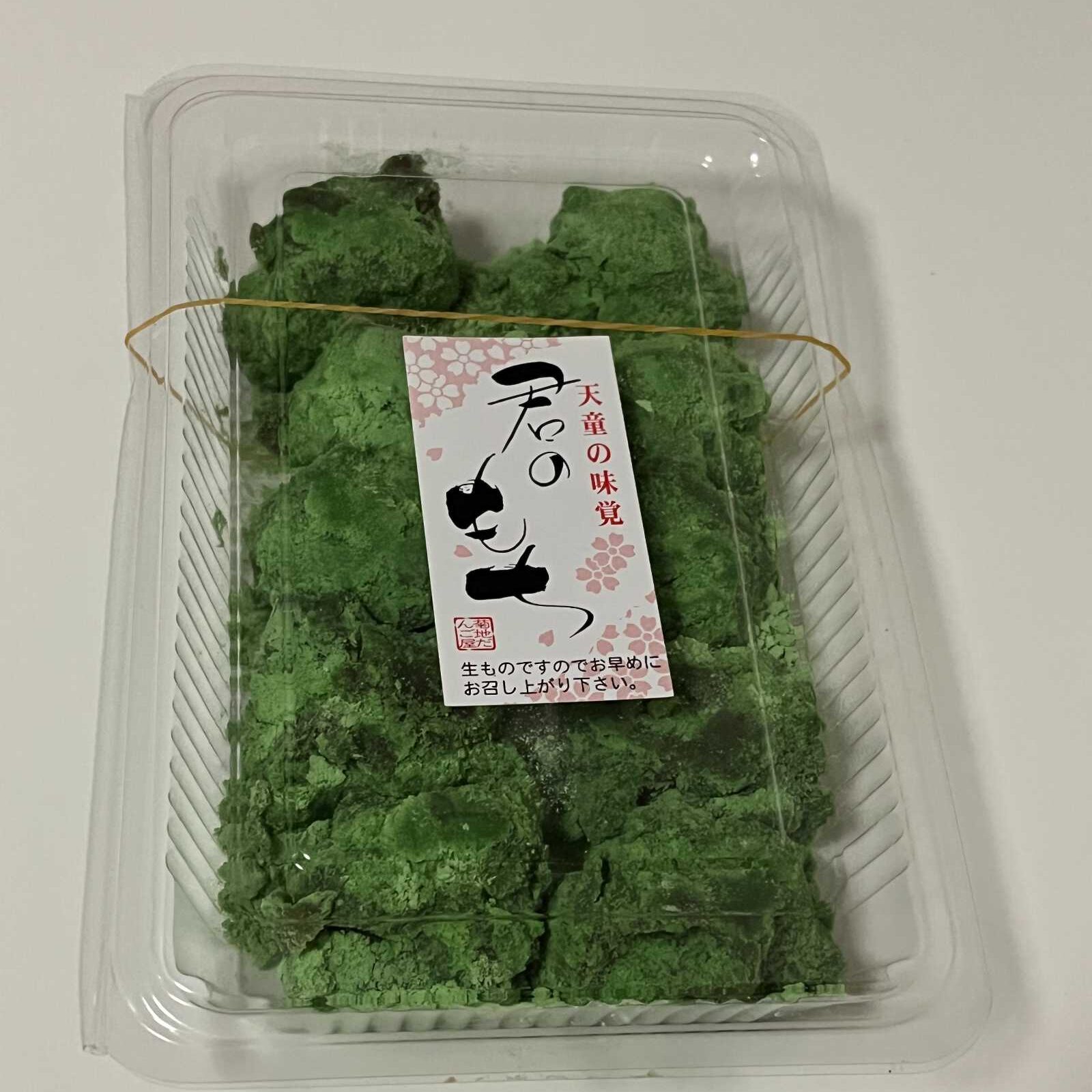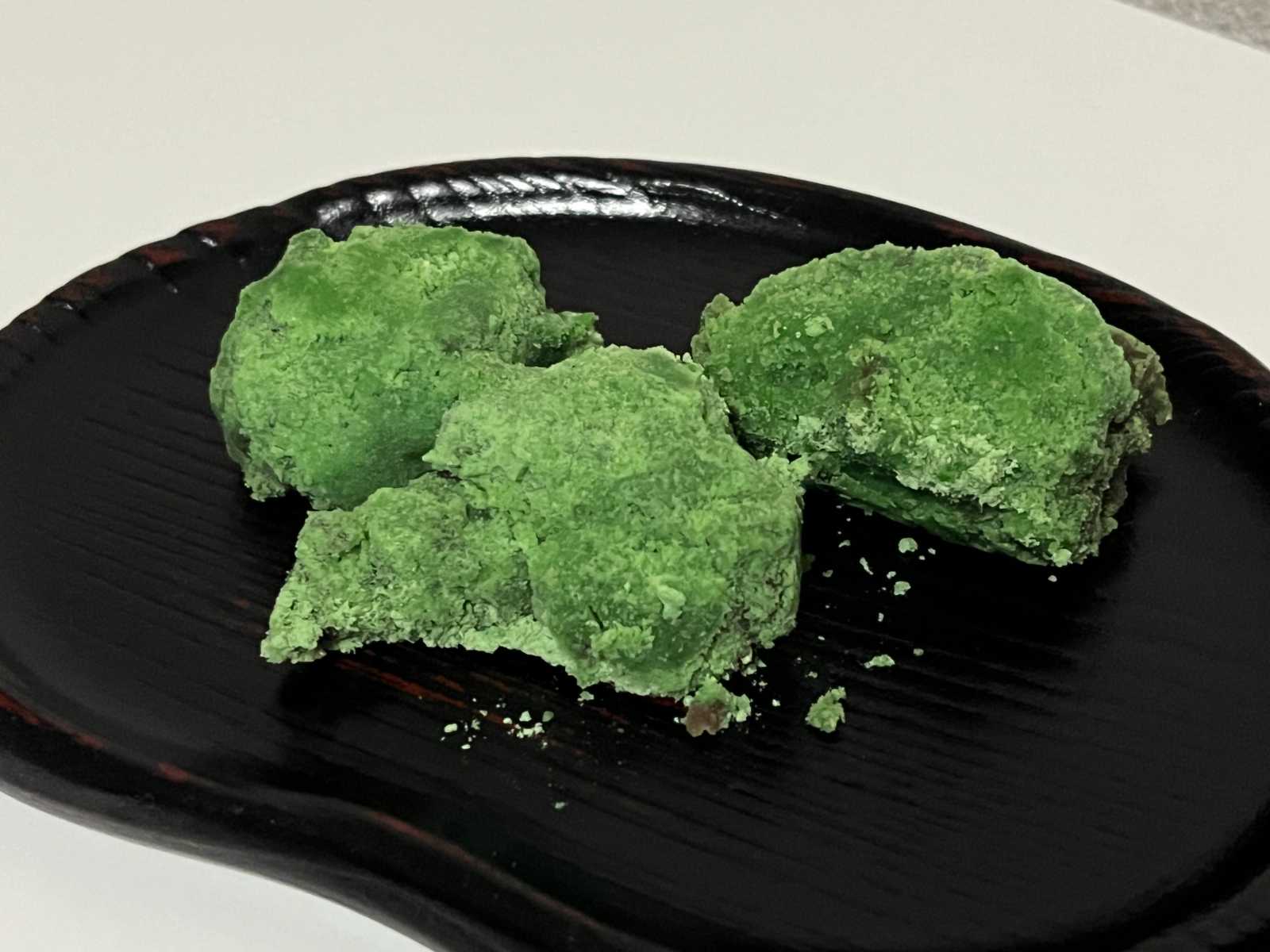 よもぎ餅はとろとろっと柔らかく、驚くほどなめらか。