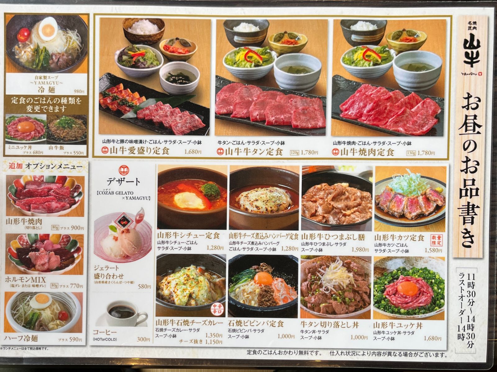 こちらが山牛のランチメニュー。