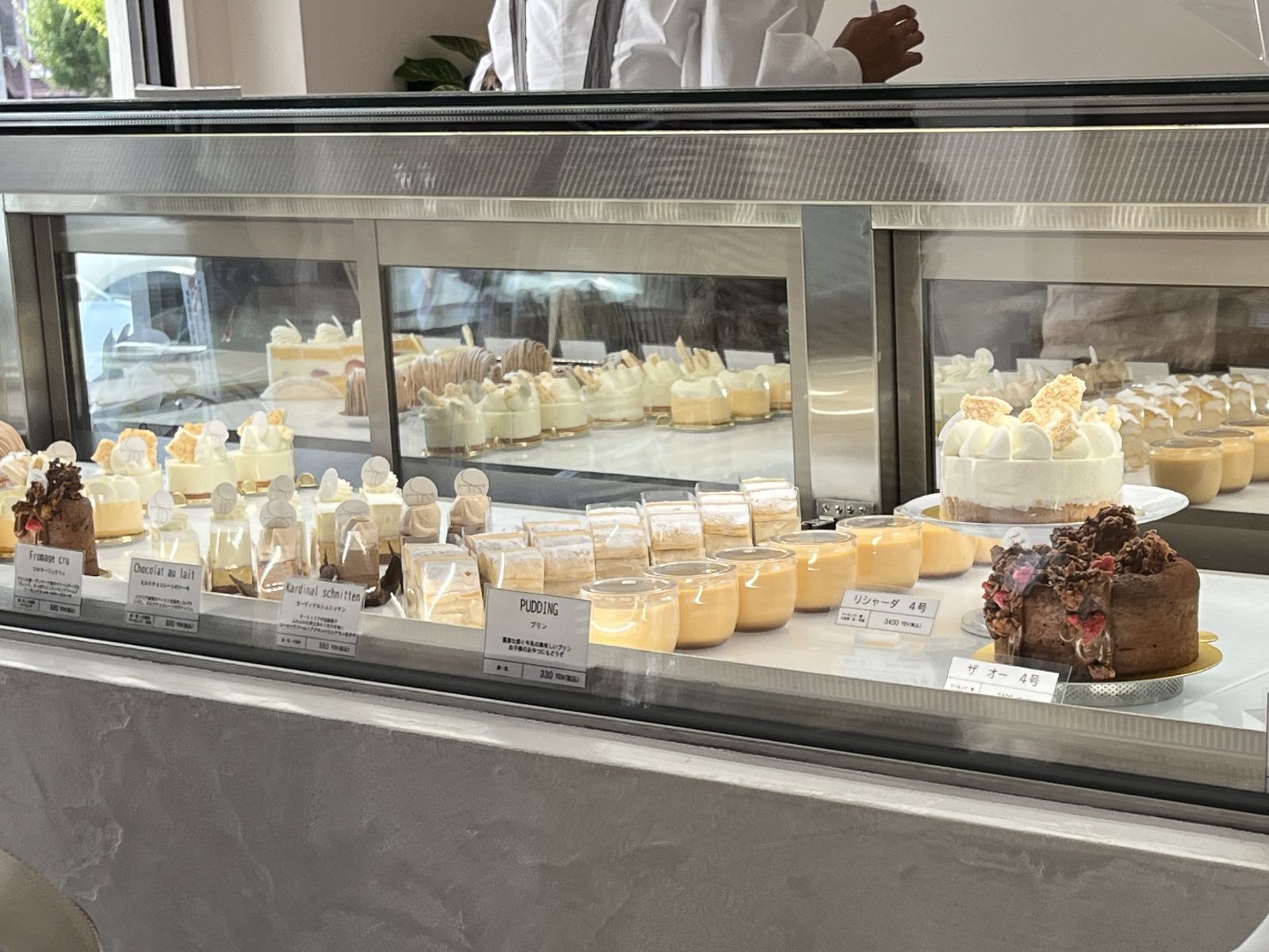店内には、生ケーキや焼き菓子、冷凍バターサンドなどが綺麗に並んでいました。
