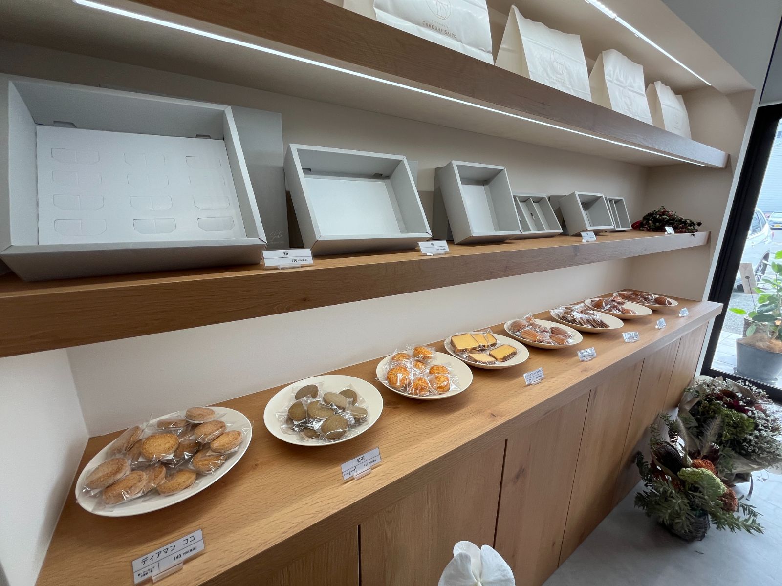 店内には、生ケーキや焼き菓子、冷凍バターサンドなどが綺麗に並んでいました。