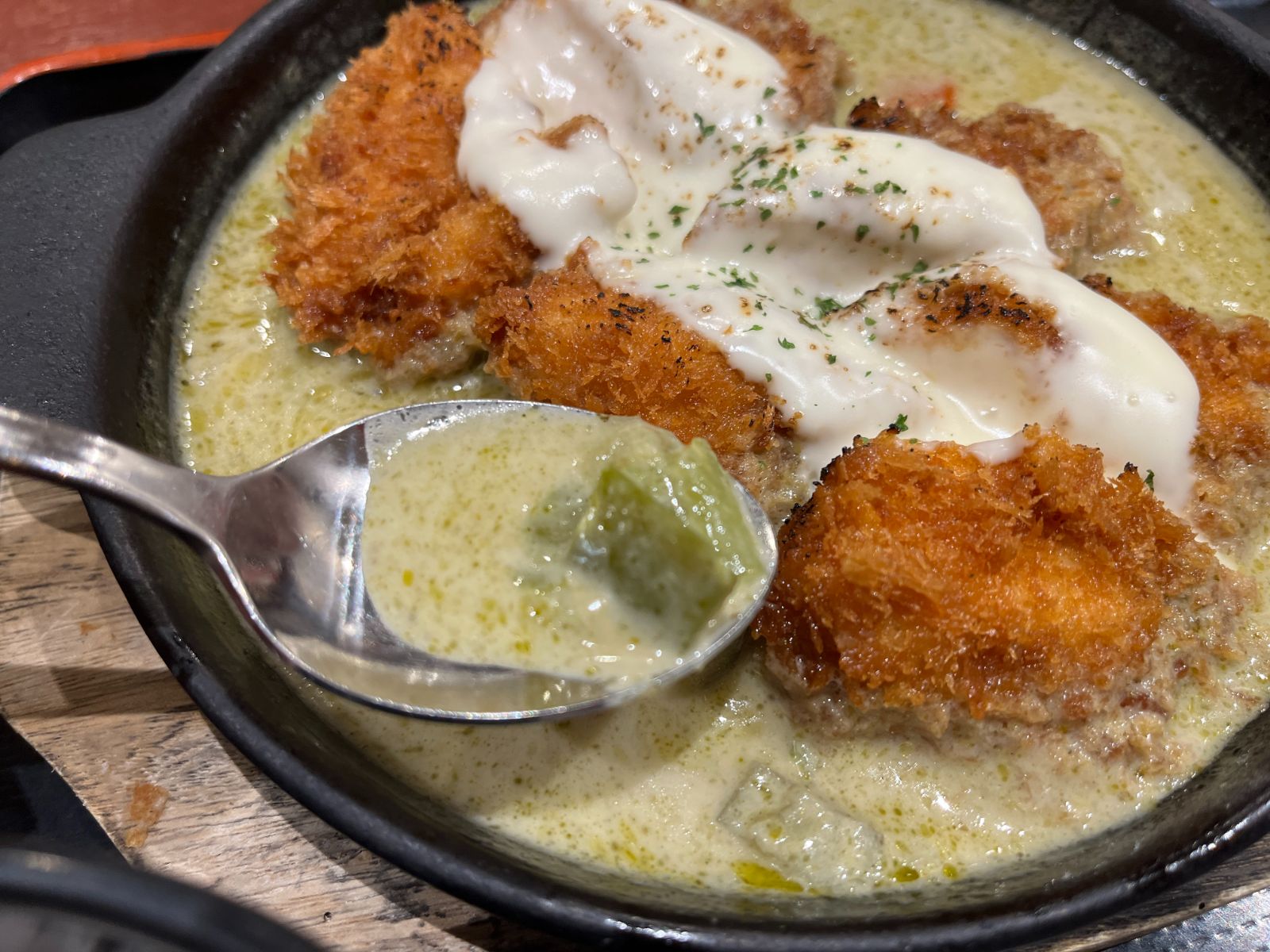 とん八の期間限定「鉄板グリーンカレーチーズ若鶏かつ膳」は、