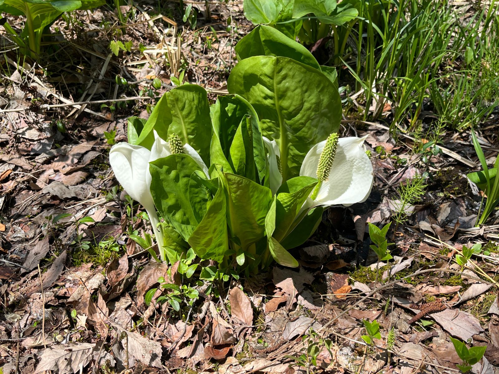 ところどころに咲くミズバショウを眺めながら、